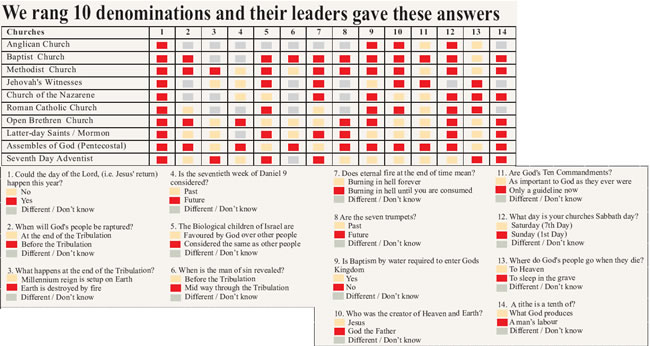 The book of Revelation appears to be on many Christian's minds, and for this reason we surveyed the churches on their teachings. We concluded Church Leaders, at least the ones spoken to, mostly lacked in Biblical understanding.